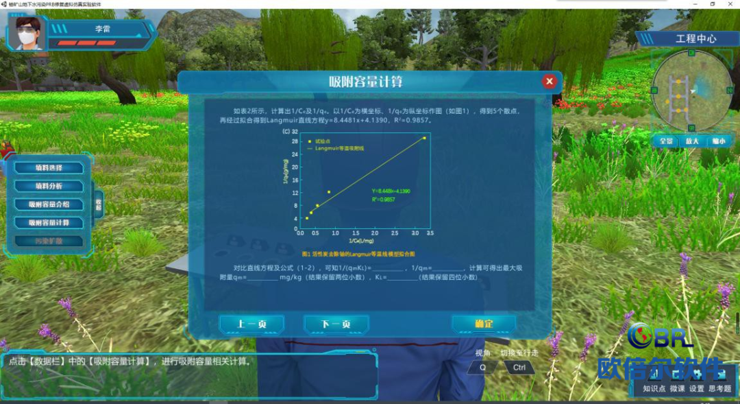 工程中心的内容包含PRB填料选择、PRB填料分析及各填料吸附容特性介绍、填料吸附容量计算、污染扩散3D展示。
