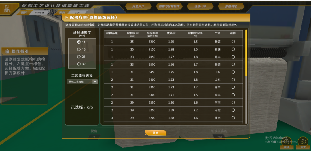 基于以生产企业大型生产场景“清梳联”虚拟仿真为背景的“配棉工艺过程与抓棉工艺设计虚拟仿真实验”满足虚拟仿真实验建设的高危险、高成本、高消耗、操作不可逆、大型综合训练等多个要素。
