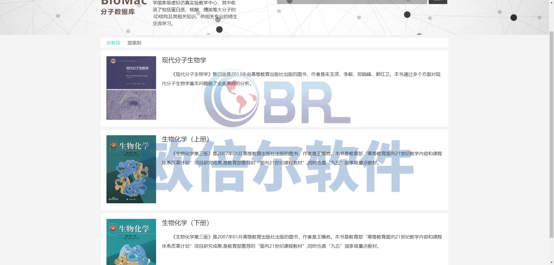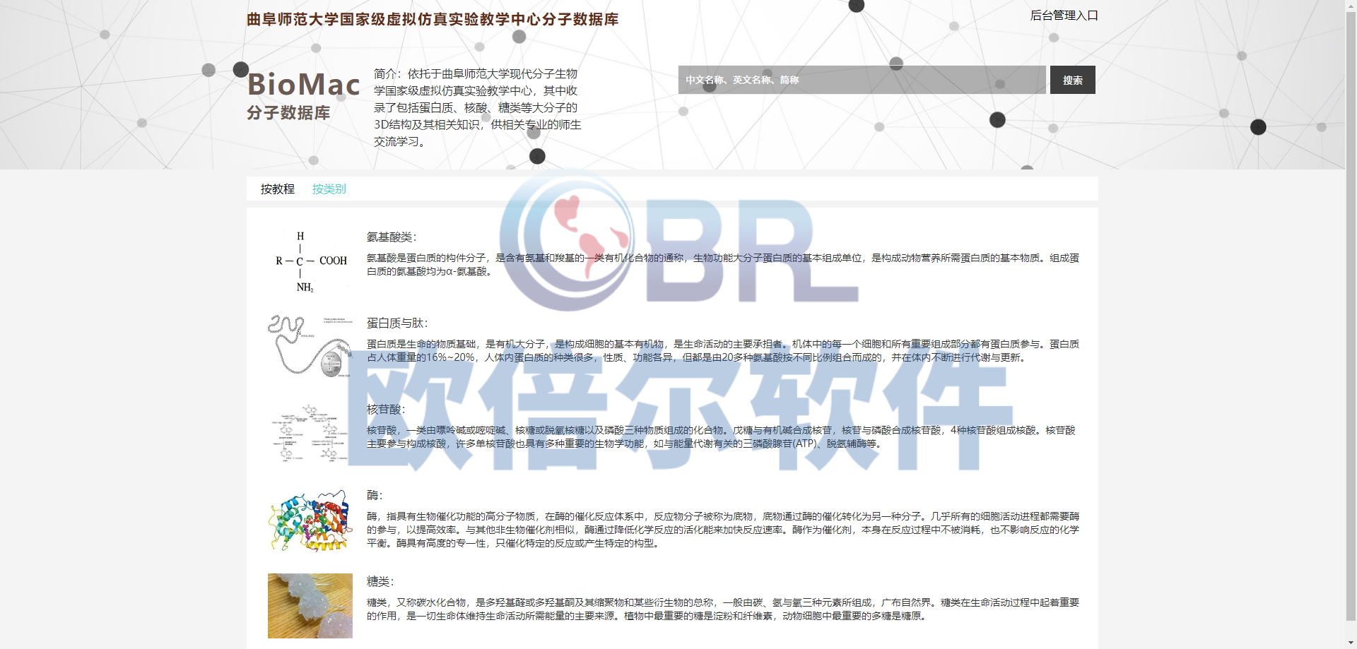 (2)内容查询法:采用级联菜单模式,根据课程的内容,即生物分子在课程中的出现顺序进行搜寻