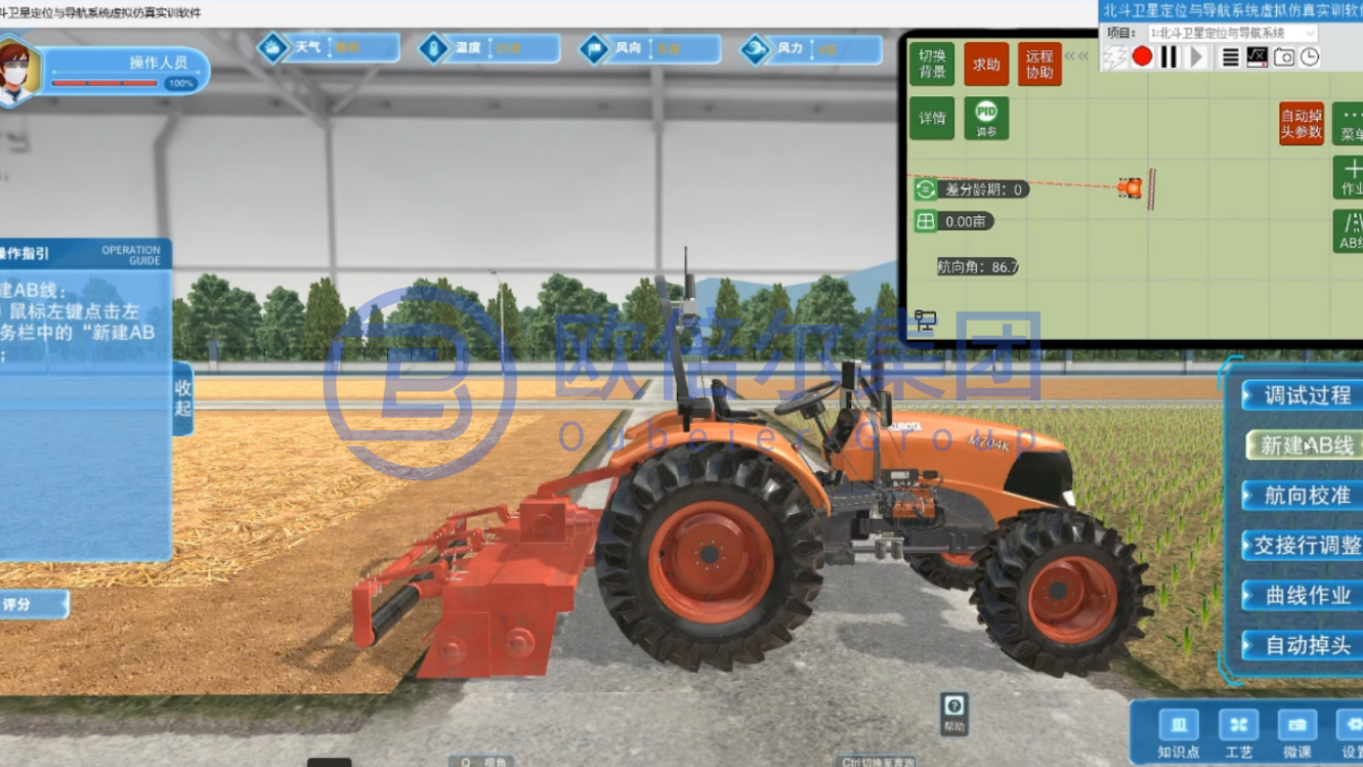 北京欧倍尔推出的拖拉机仿真实训软件,涵盖三维拆装、作业模拟、故障诊断、工作原理仿真教学等内容。软件参考真实机型1:1复刻三维场景,支持核心部件的三维拆装,如发动机、传动系统、行驶系统、制动系统、转向系统和液压工作装置等;工作原理演示,如变速箱原理、离合器原理、前桥原理、后桥原理、最终传动原理、拖拉机整机动力传输原理等;模拟各类常见故障的排查与处置流程,如离合器、变速箱、转向系统、制动系统、前桥、液压悬挂提升系统典型故障诊断与排除。