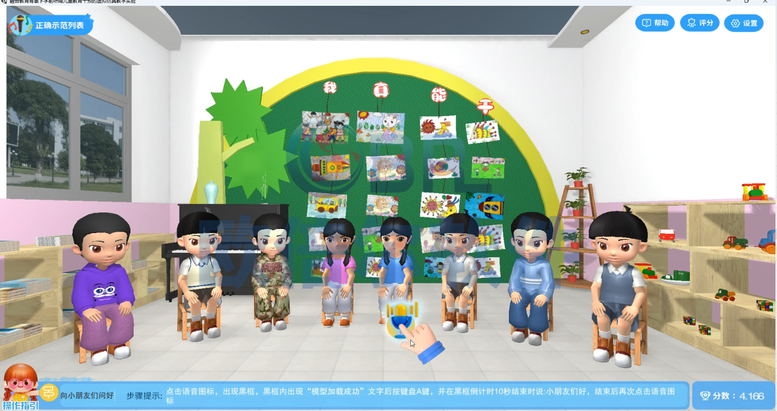 本套软件由计算机程序设计人员、虚拟现实技术人员、具有实际经验的一线工程技术人员、专业教师合作完成,贴近实际,过程规范,特别适合学前教育实验教育使用,具有较大的可推广应用价值和应用前景。