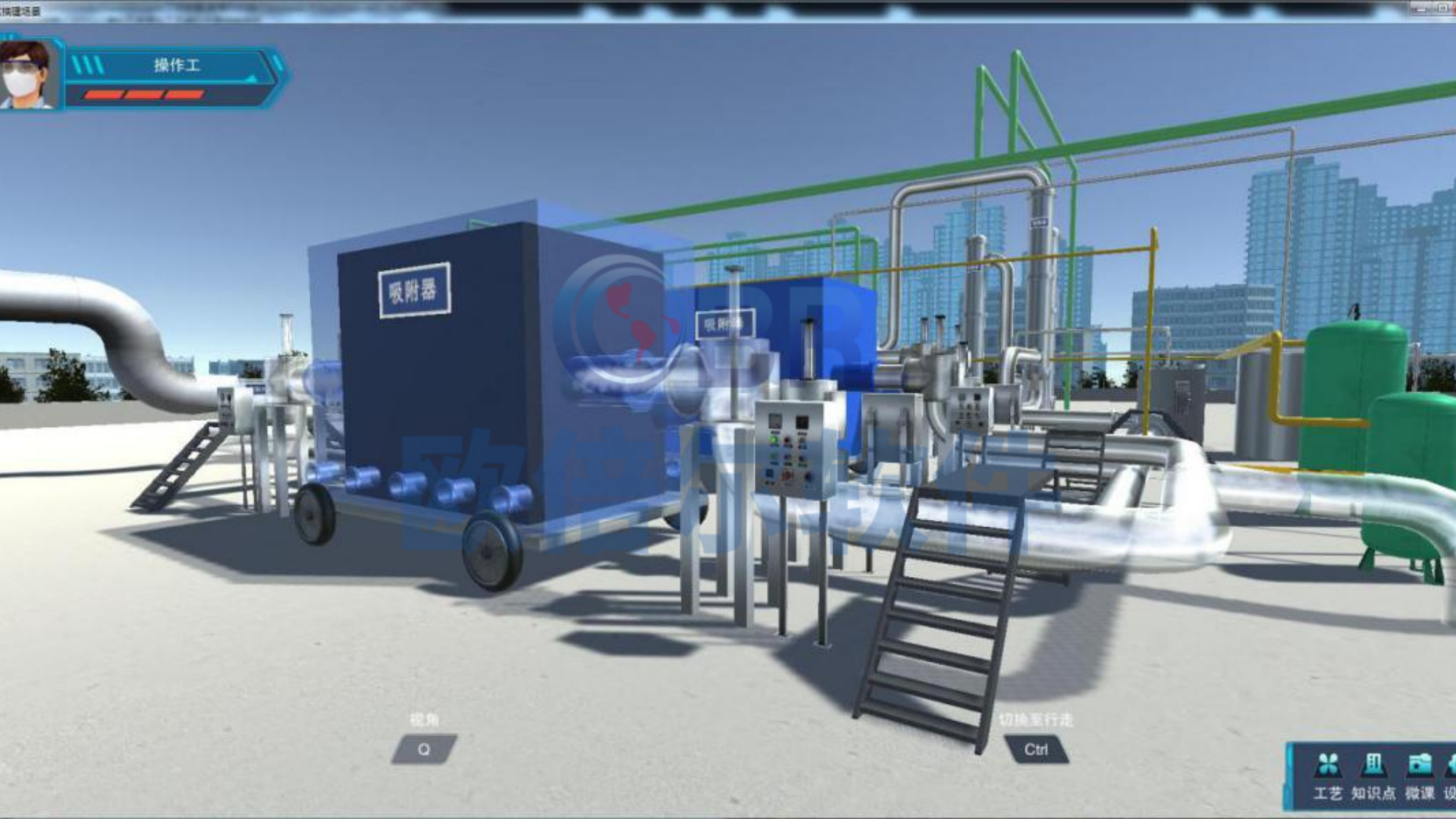 典型酸性气态污染物净化虚拟仿真实验以3D形式展示典型烟气处理的真实生产工艺过程,全面仿真模拟湿法脱硫操作、石膏脱水工艺等,以及配套的工艺原理。学员可以在仿真工厂环境中漫游,学习典型烟气处理工艺的工厂设计要求,在环境中可以实现360°旋转。将工艺流程制作成多个工序,实现工厂仿真模拟功能,文字形式展示工艺知识点,对工艺流程进行理论学习。