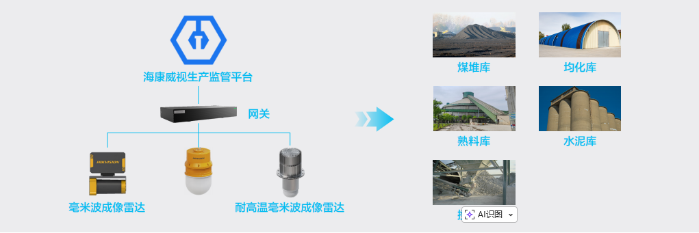 在料堆库顶部架设毫米波雷达,通过三维扫描获取料堆的体积数据实现自动化盘库,根据原材料、成品的库存情况,及时指导生产和采销计划调整,实现物料的平衡管理,提升企业经营效益。