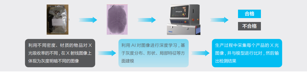 对被检样品内部缺陷、异物、一致性自动化检测,并可完成计数,测量,面积计算,标记剔除等功能。