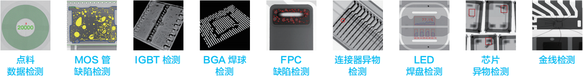 X-ray 工业缺陷检测主要用于电子电器行业产品的缺陷检测(PCBA、LED、BGA、IGBT、连接器等相关器件的空洞、搭焊、少锡 / 多锡,压铸零部件、精密结构件、精密光学器件等相关器件的裂纹、气孔、异物等),可透即可检。