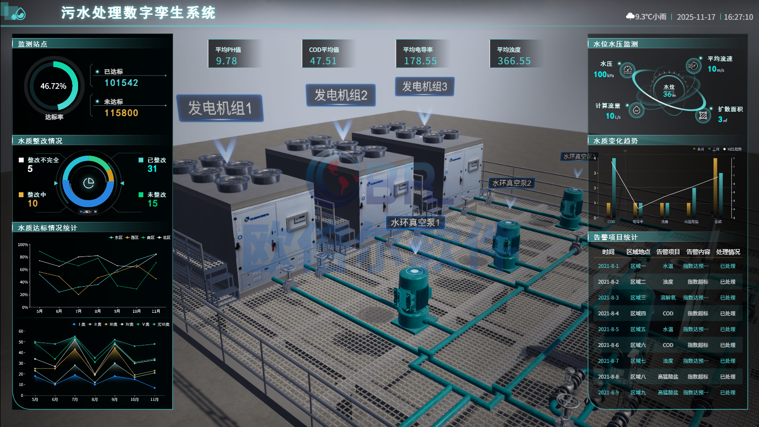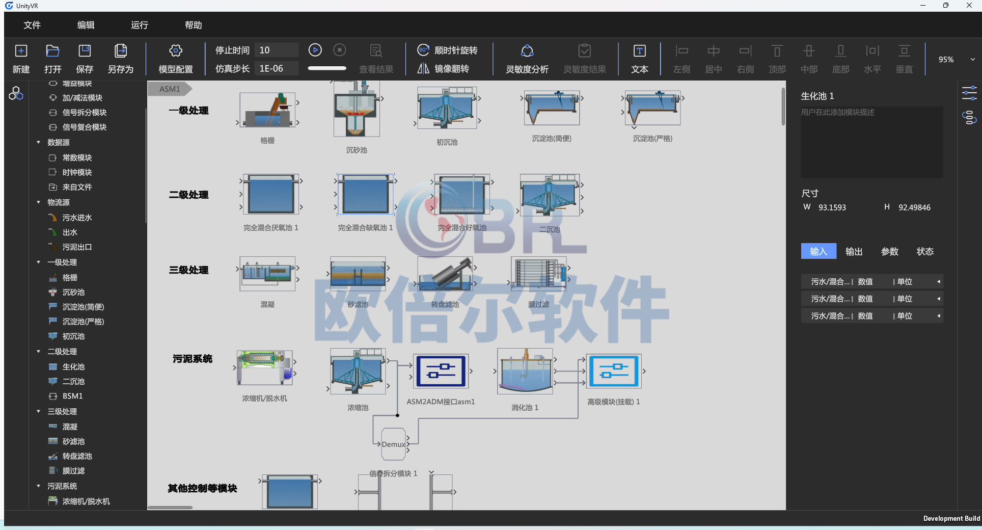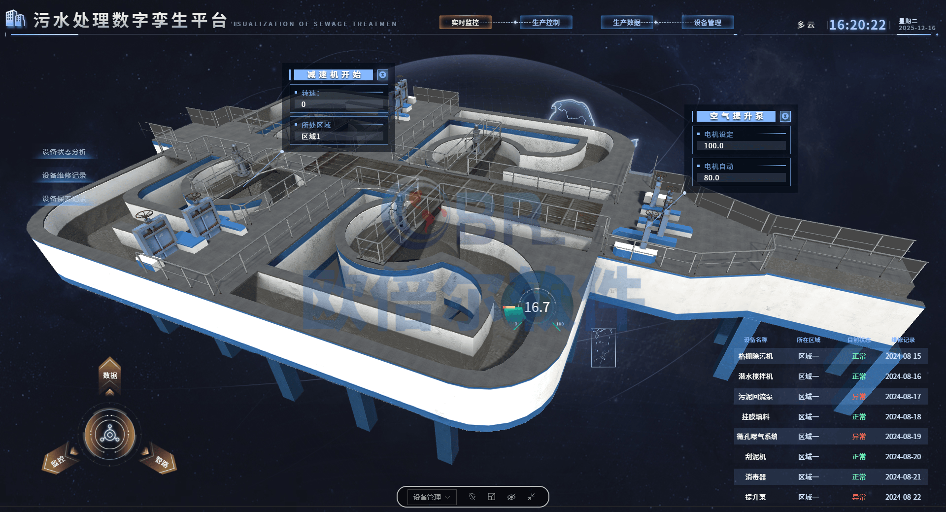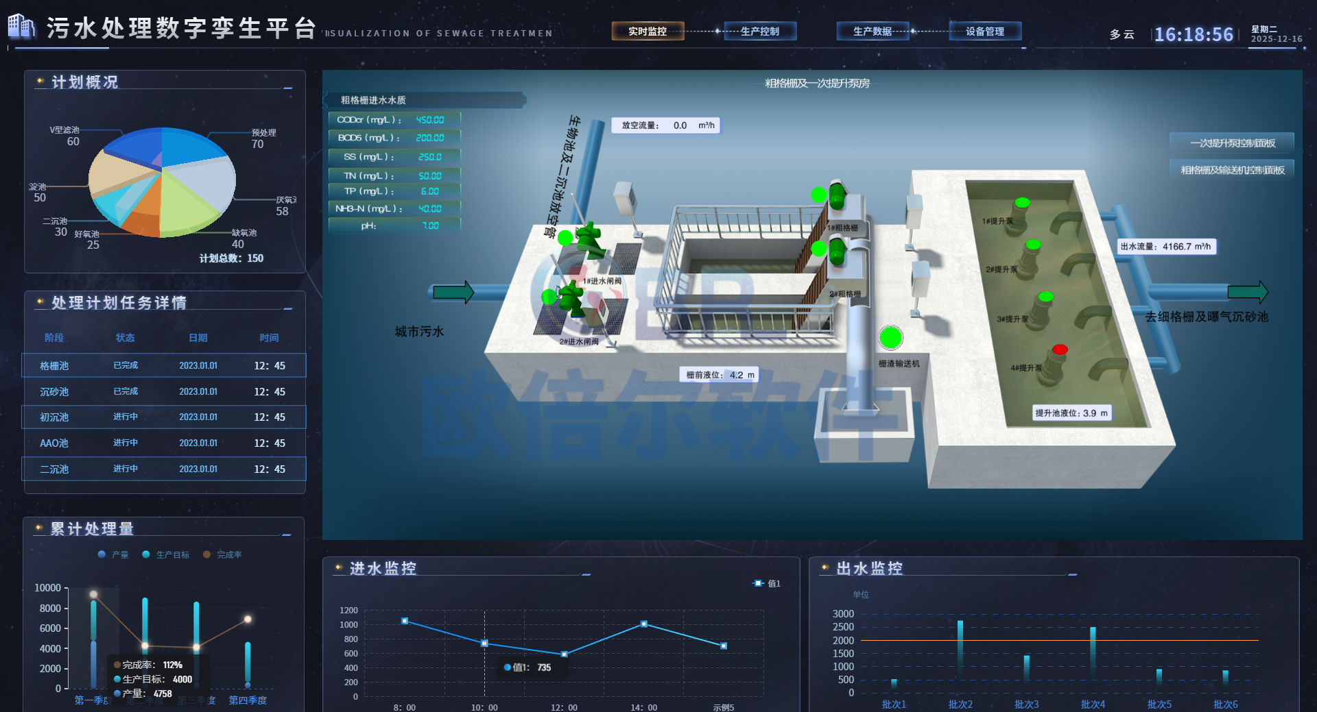 北京欧倍尔污水处理数字孪生平台针对污水处理行业人才培养痛点,融合ASM1模型算法、MR混合现实与数字孪生等前沿技术,构建了包含真实工艺设备单元和智慧水厂界面的综合实训体系。
