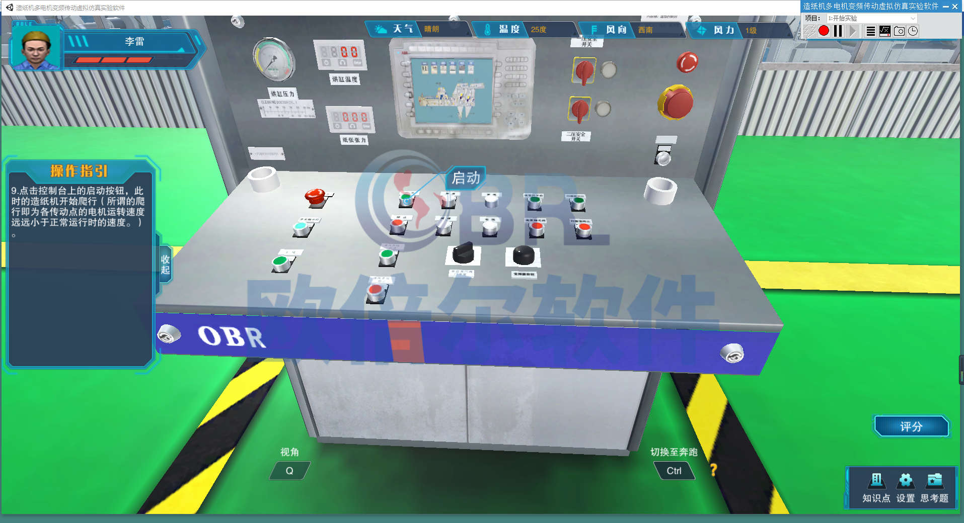 本软件借助虚拟仿真实验平台,再现造纸车间的真实作业场景,还原了造纸车间生产过程中“头箱—网部—一压—二压—前烘干—施胶—后烘干—压光—扫描—卷纸—吊装”整个操作的全过程。软件以三维动画的形式重现造纸生产典型工艺仿真环境,使学生了解造纸车间电机传动的原理及应用。结合逼真造纸车间仿真环境,使学生更加直接真切的了解造纸生产过程中各电机之间的传动过程。