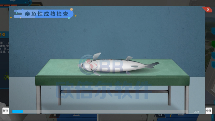 软件中详细展示了长江鲟的解剖方法,帮助学员观察长江鲟的内部器官,并掌握长江鲟的人工繁育技术。此外,软件还提供了解剖复原功能,学员在观察完器官后可以选择复位,继续观察其他器官。