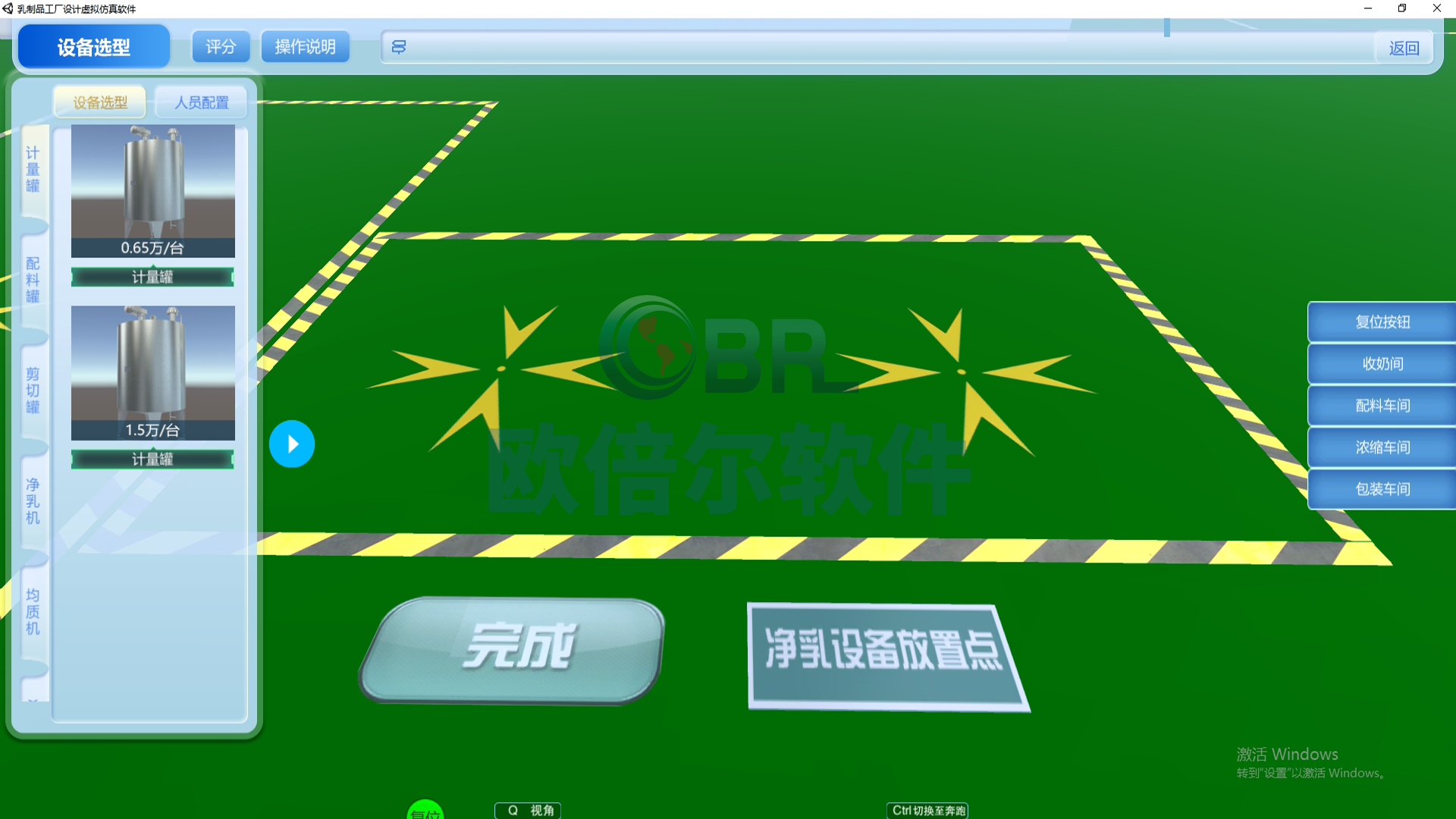 该软件通过虚拟现实技术,模拟真实的食品工厂设计场景,使用户能够在虚拟环境中进行工厂布局、设备选型、工艺流程设计等操作,结合了计算机程序设计、虚拟现实技术、食品工程知识等多个领域的技术,为用户提供一个高度逼真、互动性强的学习环境。乳制品工厂设计虚拟仿真软件主要分为厂区规划,产品工艺设计,设备选型以及经济分析四个板块。