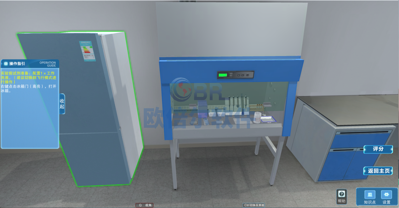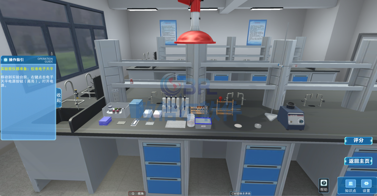 系统对虚拟现实场景中的操作和仪器设备选择进行实时评定,可导出、打印成绩。