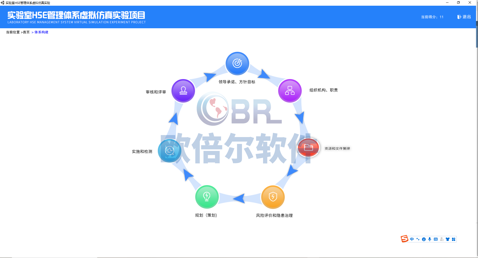 实验室HSE管理体系虚拟仿真实验专注于实验室健康、安全与环境(HSE)管理体系的构建与应用,完整再现了HSE管理体系的概述学习、体系构建、典型场景应用与考核测试全过程。