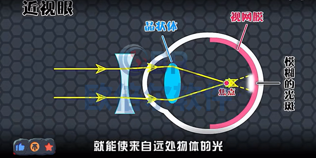 ③弹出原理:通过动画、特效、视频形式在3D场景中显示镜片折射、反射光学原理。