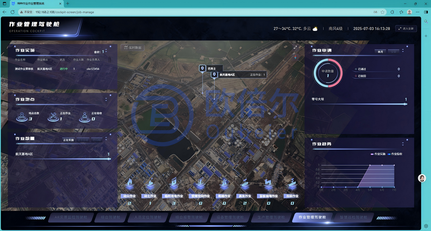 特种作业管理驾驶舱,这是一个专门设计用于监控和管理特种作业活动的控制中心。具备先进的技术和设备,能够实时收集和分析作业数据,确保作业过程的安全和高效。