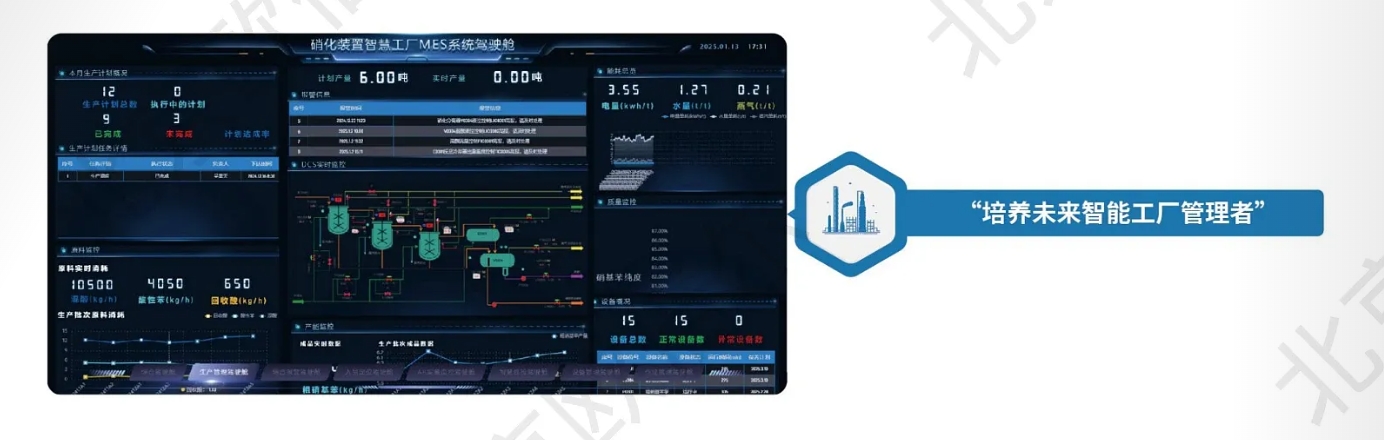 在智慧工厂实训中,MES 系统帮助学生掌握生产计划编制一工单执行一数据反馈的闭环流程,理解“精益生产”理念,无缝对接化工生产管理岗位能力要求。