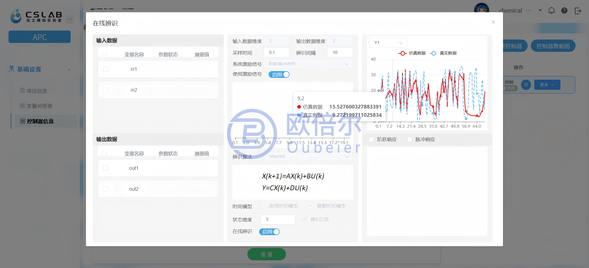 (1)系统状态空间方程参数辨识:支持在线离线辨识。