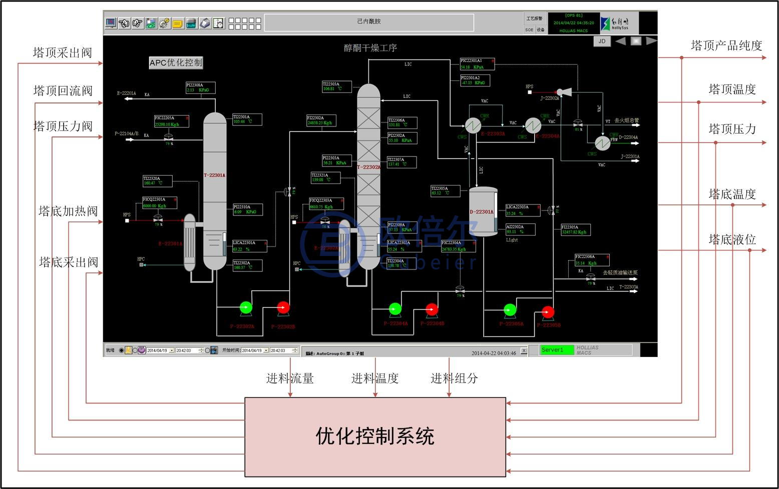 APC是在常规PID控制基础上实现的更高级控制,可以预测装置的变化,提前调节多个相关的操作变量,因而可提高装置运行的平稳性,计算优化控制方案,使装置处于最优操作点附近运行(卡边操作),从而最大限度地提高目的产品产率、降低消耗,增加经济效益。
