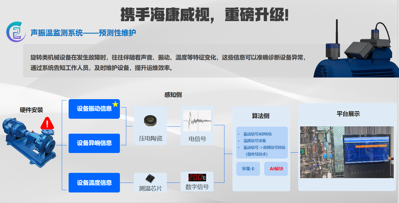更为关键的是,热成像相机的温度报警数据、声振温检测仪的设备预警信息,全部实时对接并整合到VR全景平台中。