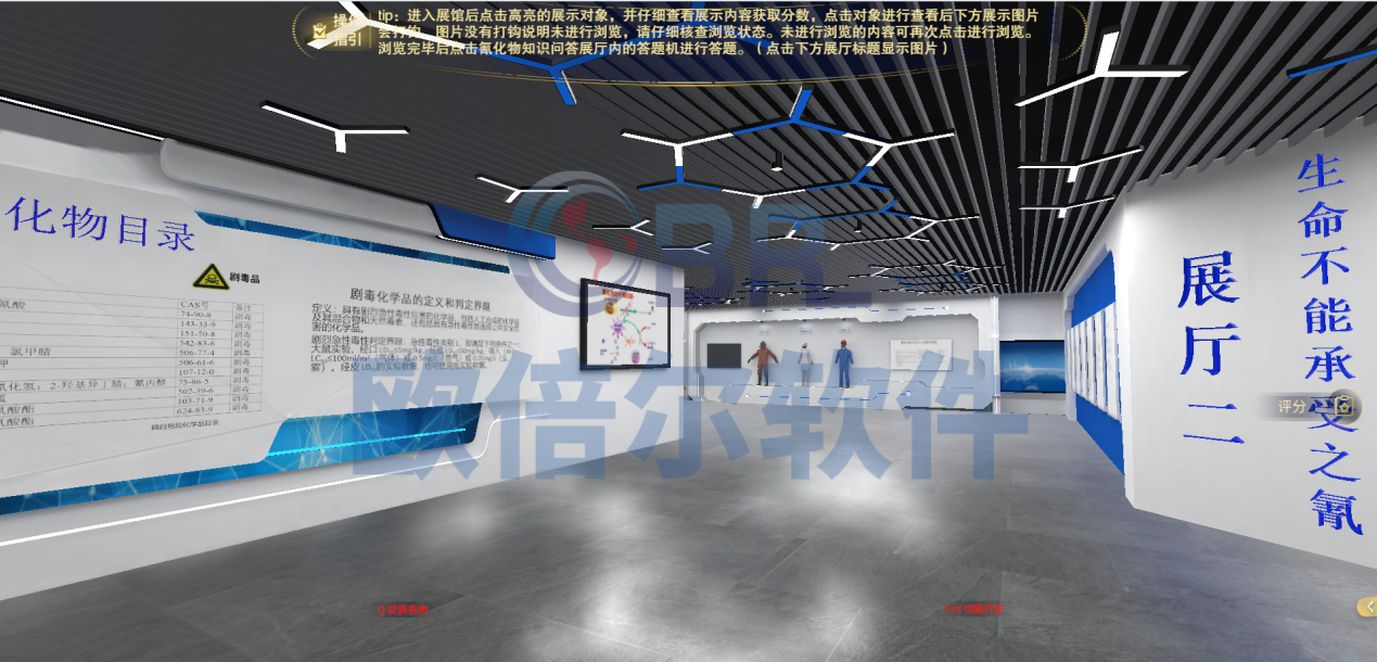 北京欧倍尔与天津医科大学合作,共同打造了一个可交互的氰化物数字展厅,使得这种剧毒物质在虚拟空间中实现了零风险的认知革命。展厅一以分子级精度解析其本质属性,构建立体知识体系;展厅二剖析毒性机制,明确剧毒标准,结合案例敲响安全警钟;展厅三展示在多领域的关键应用;展厅四聚焦绿色替代,为工业可持续发展提供新思维;展厅五设答题机,巩固知识、认证能力。