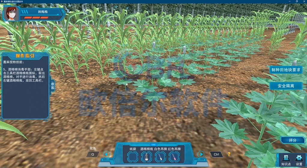 以蓖麻授粉为例:模拟制种田地块要求、安全隔离、标志植株分辨、自交、酒精棉消毒手部、采粉、授粉、标记等操作。细节展示蓖麻、蓖麻花朵、蓖麻花苞、蓖麻果实、蓖麻种子,辅助蓖麻授粉技能的学习。