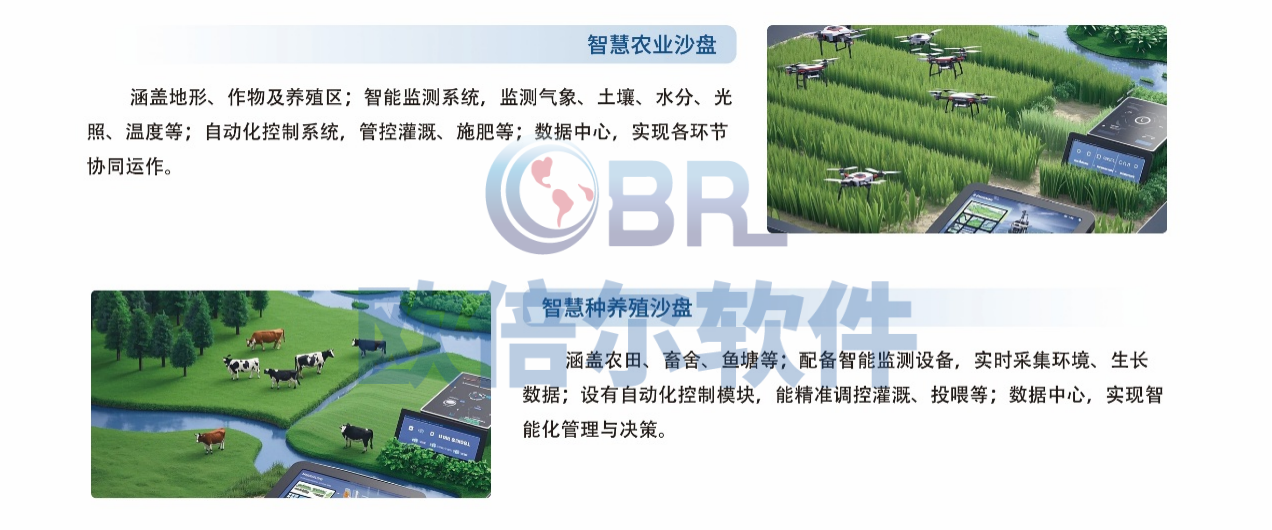 融合三维建模、多媒体、传感器、物联网及人工智能技术,精准还原农田场景、牧场场景,细致呈现每一处土壤细节、每一头畜牧状态及园林搭建全貌。实时呈现土壤成分、畜牧生长数据,提供更全面、直观且智能的决策支撑。