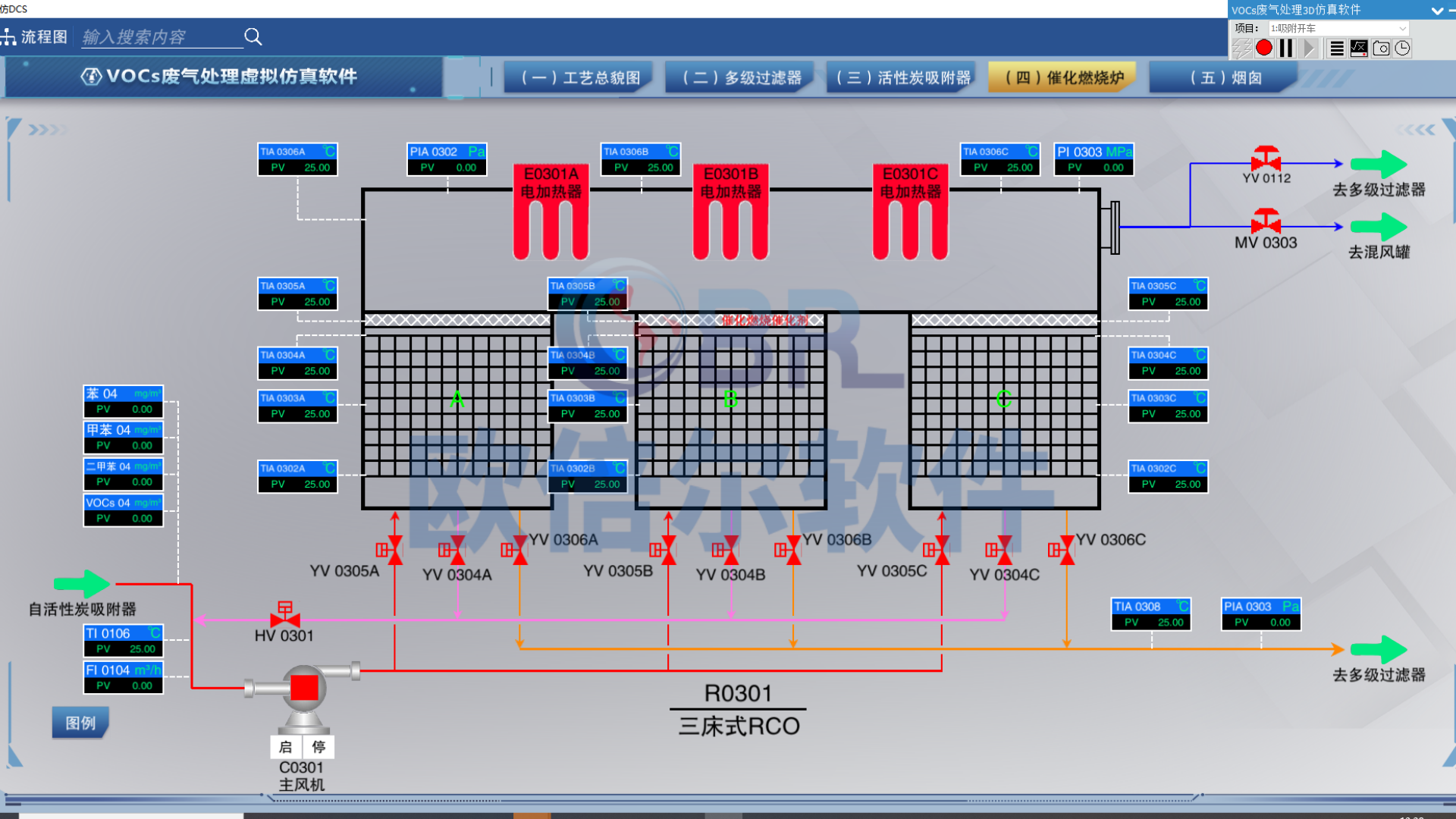 挥发性有机物(VOCs)净化及资源化工艺虚拟仿真综合实验仿真软件