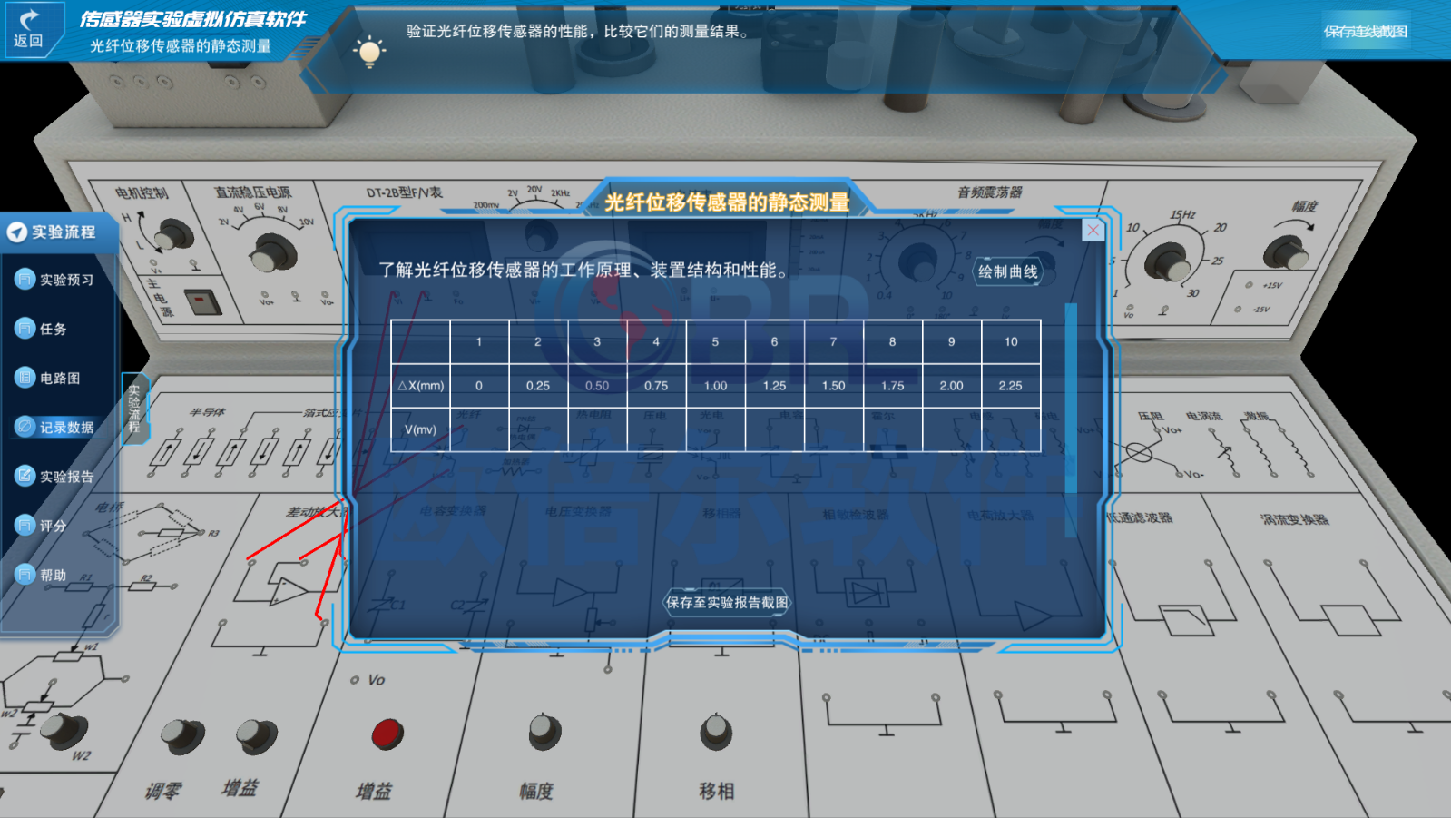 软件涵盖多种类型传感器的典型实验,包括: