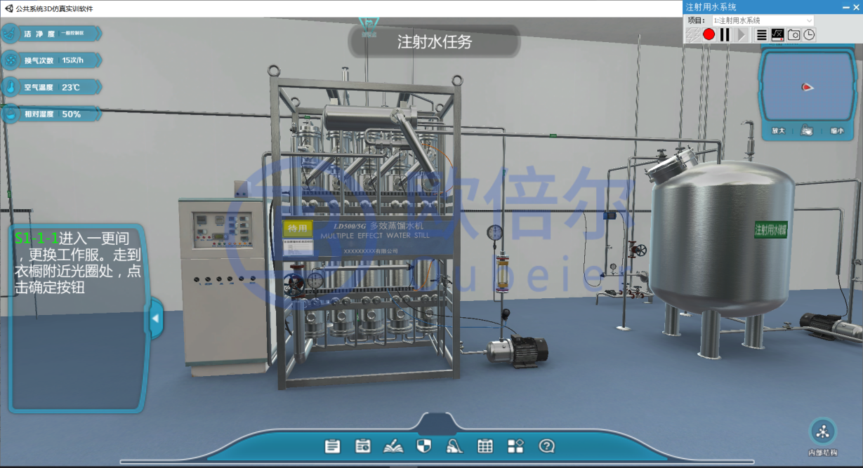 如今,北京欧倍尔开发了体系化、全流程、高仿真的药物制剂系列虚拟仿真软件,从制药厂区全局认知到车间岗位精细操作,从辅助系统验证到特殊制剂生产,从基础练习到标准化考核,全方位覆盖药物制剂教学与培训的核心需求,让实训教学彻底摆脱场地、设备、安全的三重约束,打造沉浸式、可反复、重实操的GMP生产学习体验。