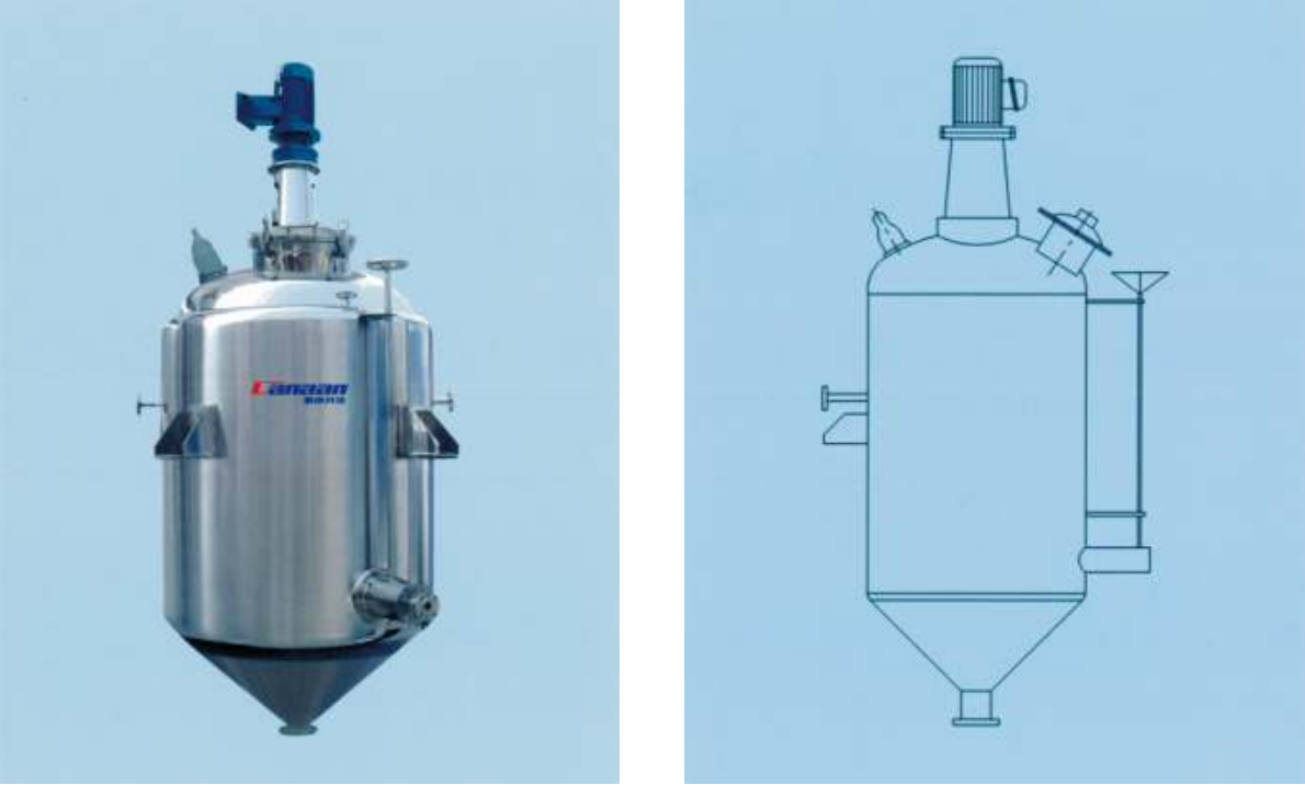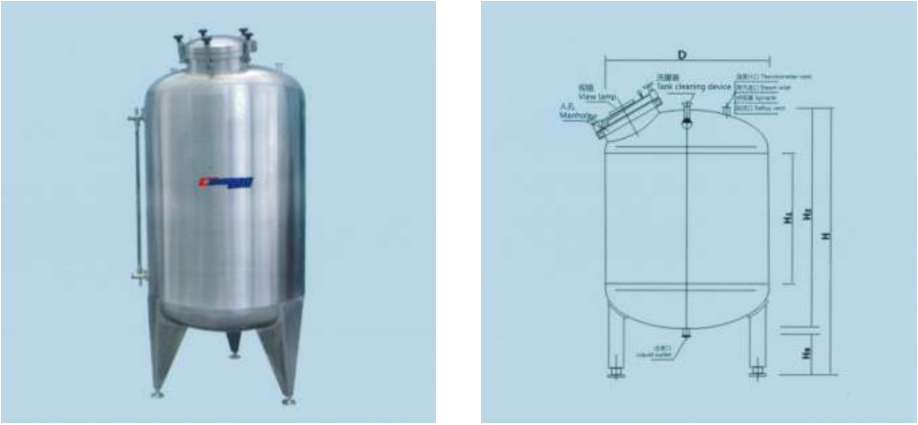 该系列容器适用于制药行业的浓/稀配之用,罐体设有夹层,可加热、 冷却,内表面采用电解镜面抛光,封头(锥形)均经旋压加工,符合 GMP 标准。
