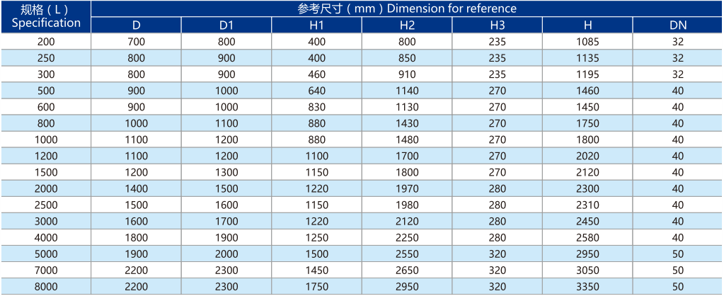 储罐容积200L-8000L 等标准规格,也可根据客户实际需要进行设计、 加工。