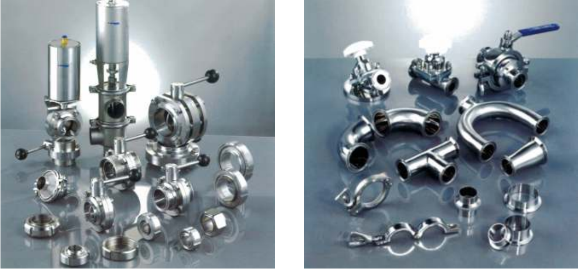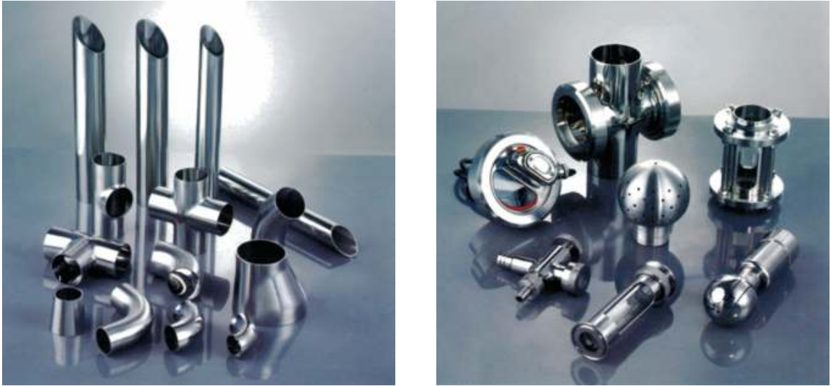 加工的每一个配件都精工细作,材料均采用SUS304、SUS316L 制成,内镜面抛光,光洁度Ra=0.28um, 表面处理采取机械抛光、磨砂、哑光等多种形式,采用ISO、DIN、IDF、 SMS 等国际技术标准,系列化产品能符合GMP 医药标准。